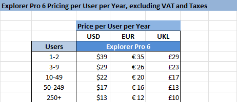 Purchasing Licenses for Formula Explorer Pro 6Purchasing is handled by the FastSpring E-Commerce platform on behalf of Decision Models. Buy Licenses hereExplorer Pro 6 Volume PricingA single Explorer 6 License can be activated on 2 PCs.