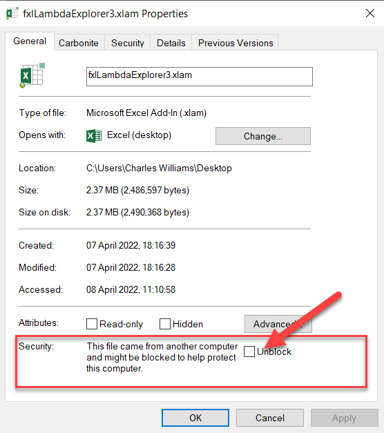 Copy the XLAM file from your Downloads folder to a folder of your choice.